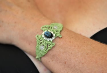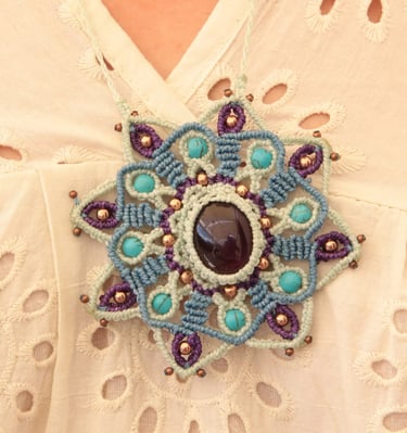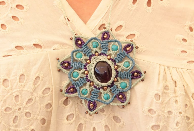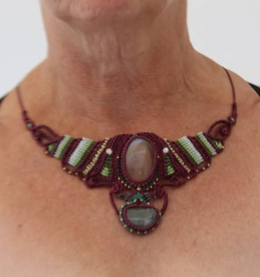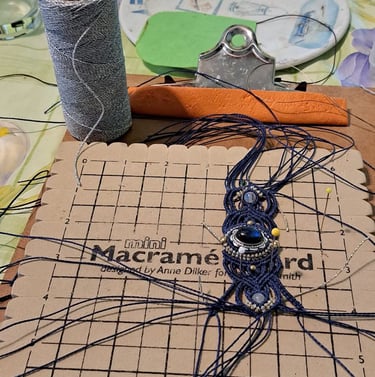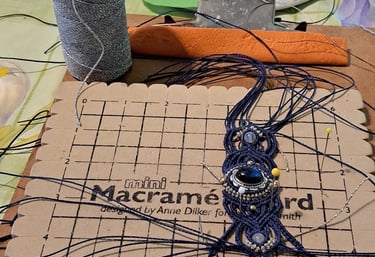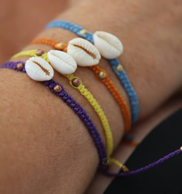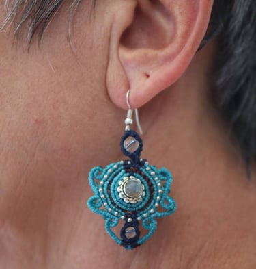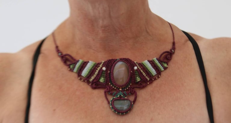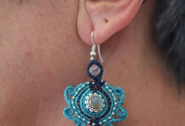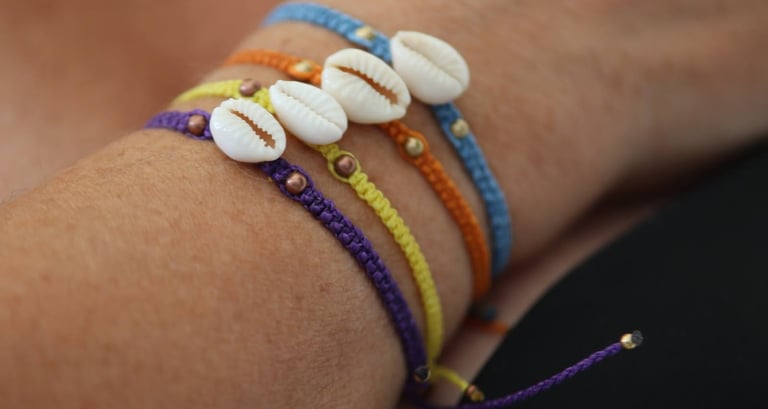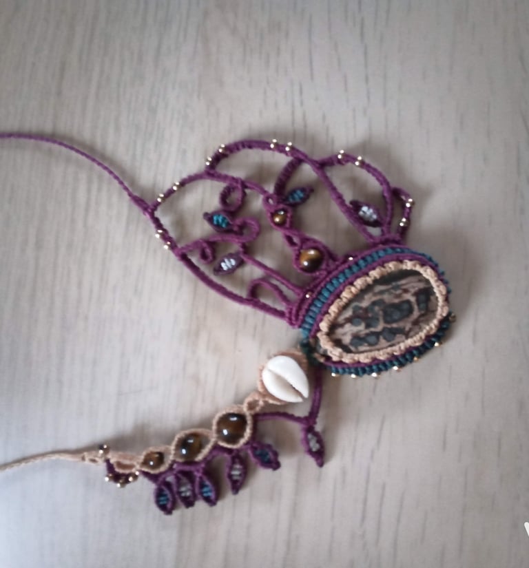 Le tissage est venu plus tard, inspiré par des coquillages polynésiens que j’ai voulu transformer en bijoux. Grâce à une formation auprès de SOLYLUNA MACRAMÉ, j’ai découvert le micro-macramé et développé ma propre approche, entre couture, tissage et artisanat.